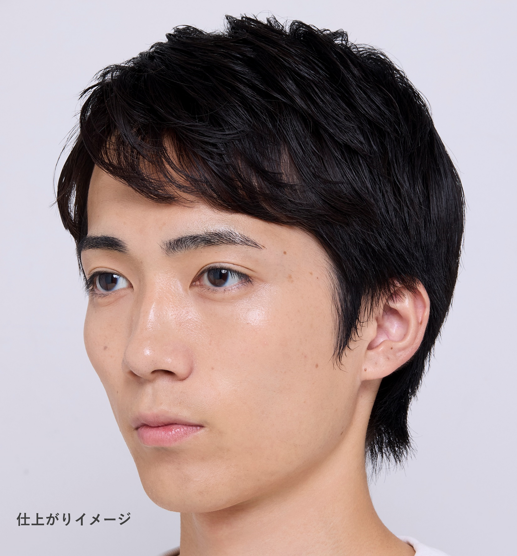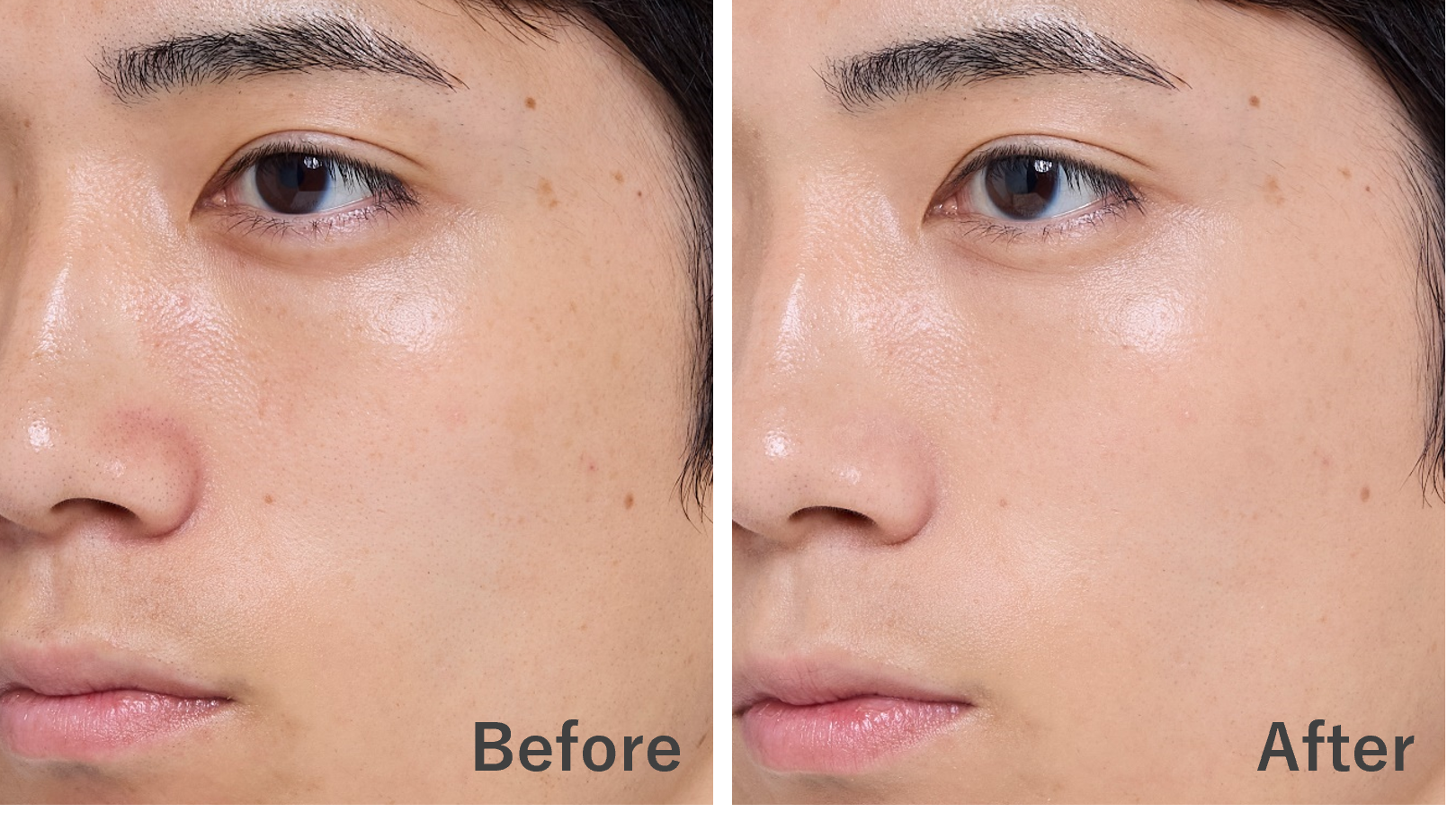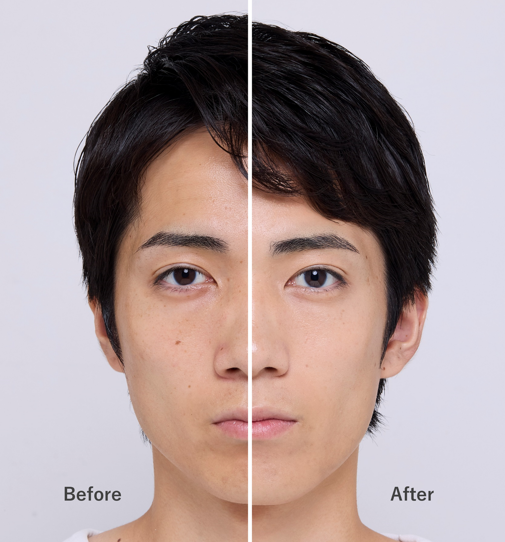 赤暗く見えがちな男性の肌に黄みをプラスし