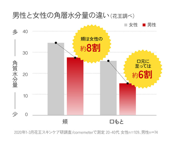 実は、男性の肌は女性に比べてうるおいが少なく、乾燥していることがわかっています。