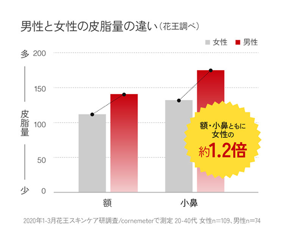 事実、男性の皮脂量は女性の約1.2倍あります!