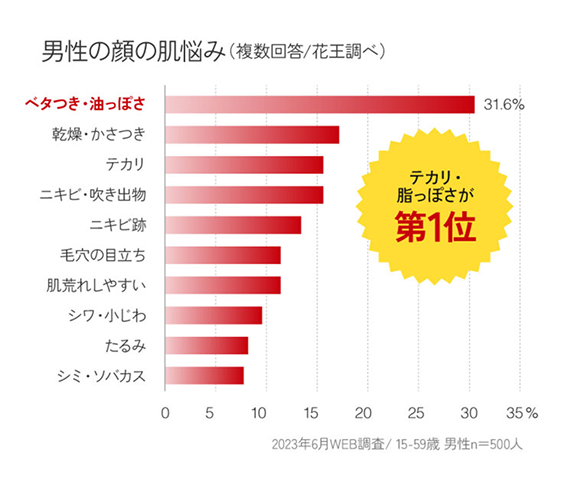 男性の多くが抱える肌悩み、それが「ベタつき・油っぽさ」です。